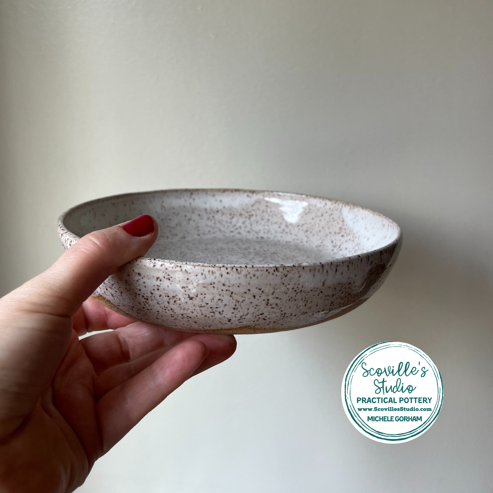 The bottom interior of these bowls are flat and smooth like a plate for easy cutting, dipping, scooping (no ridges). They have a shallow one inch-ish rim.