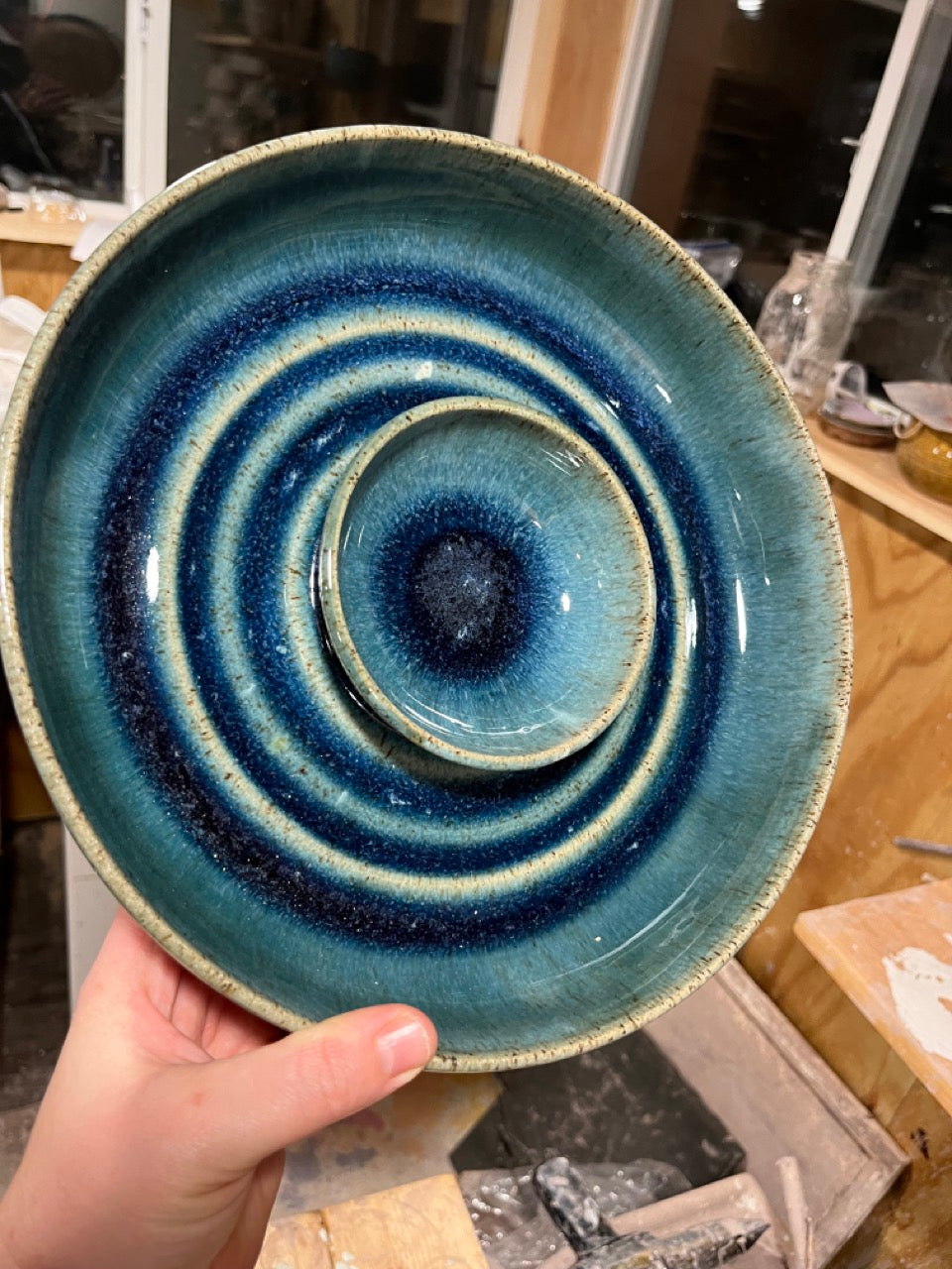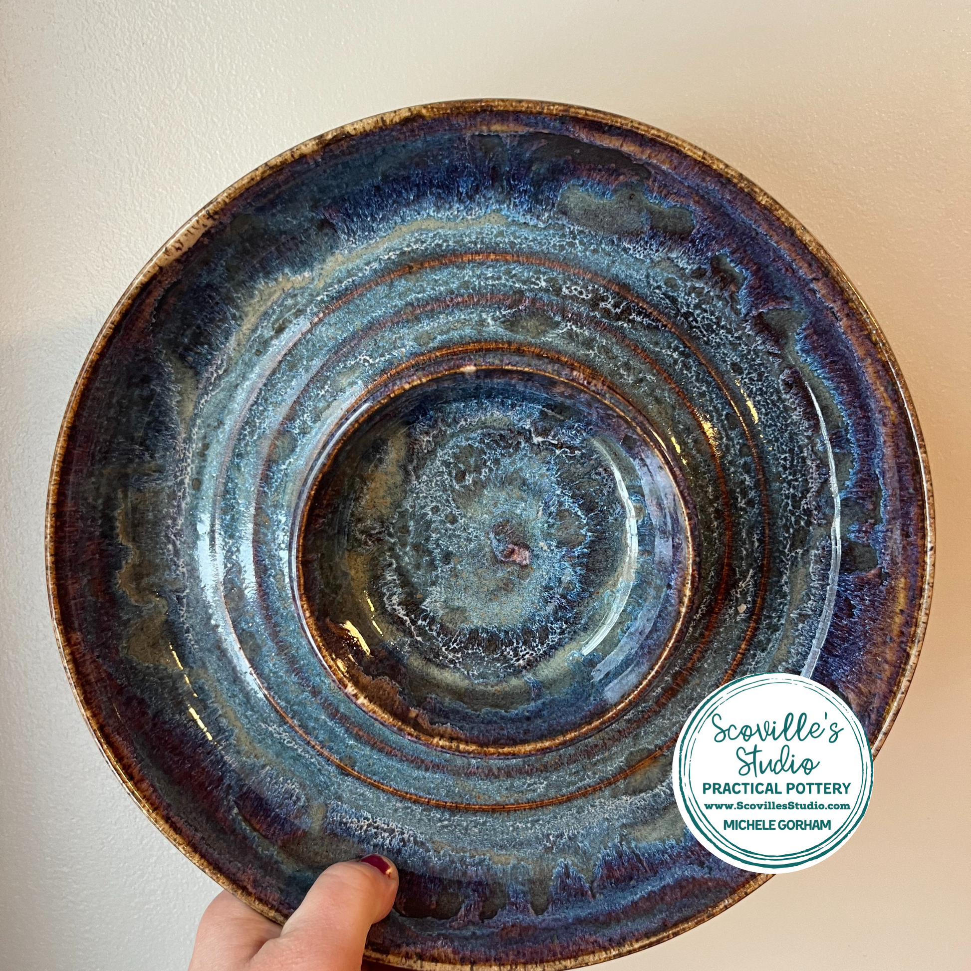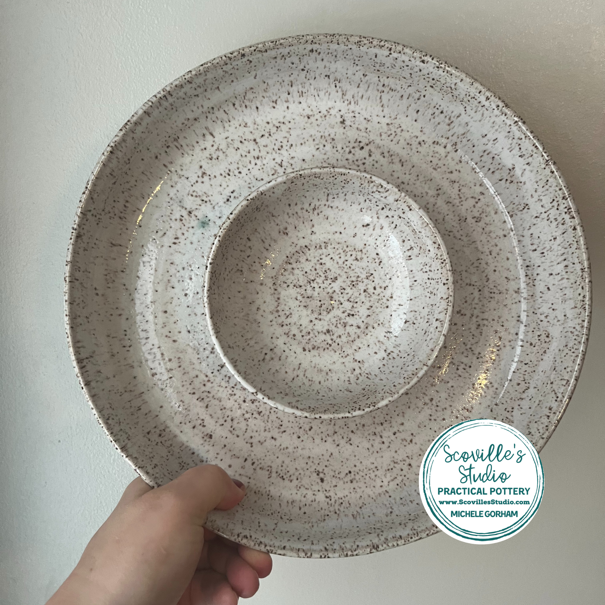 Each bowl is approximately 10-11 inches wide, 2-ish inches deep, and can hold a cup of your favorite dip!