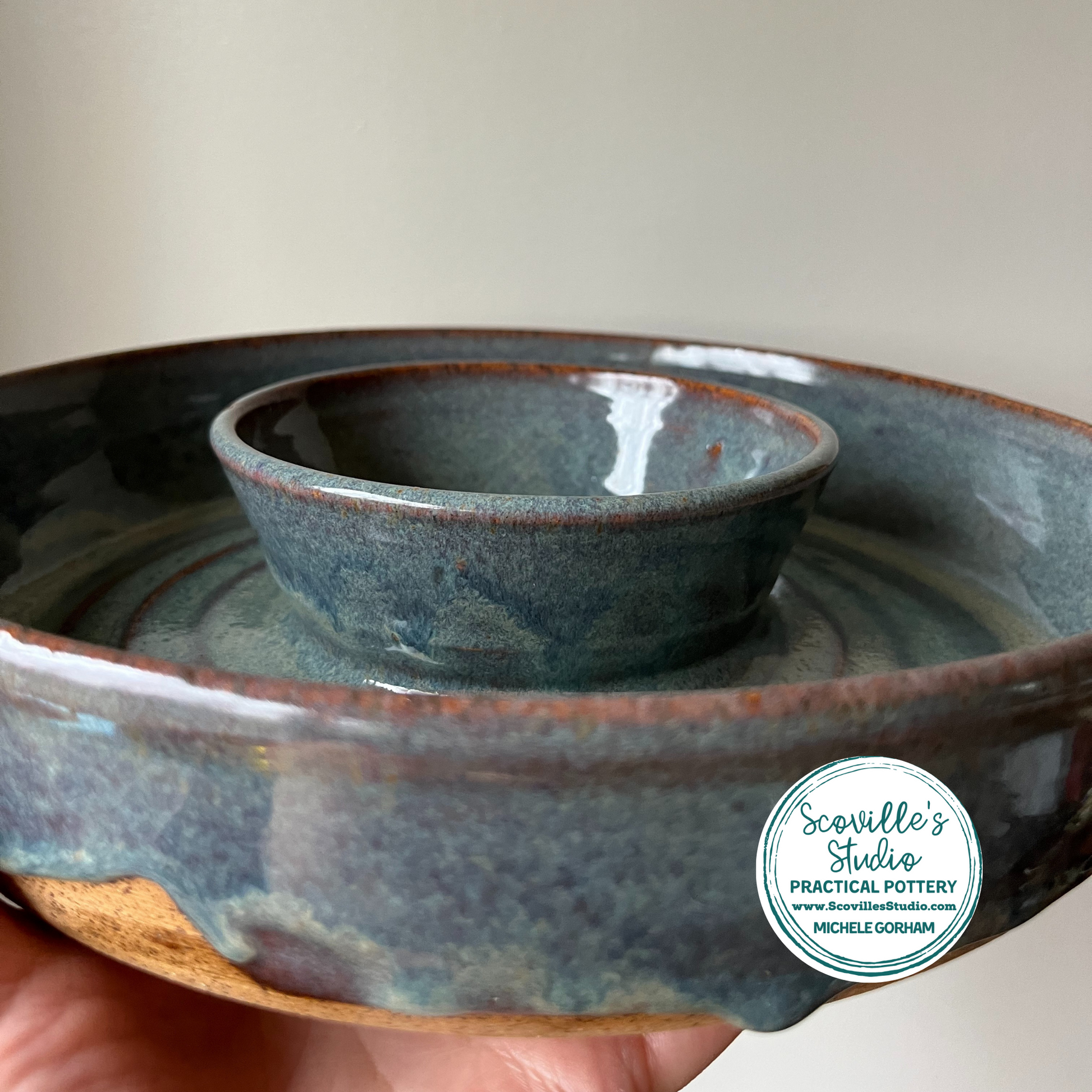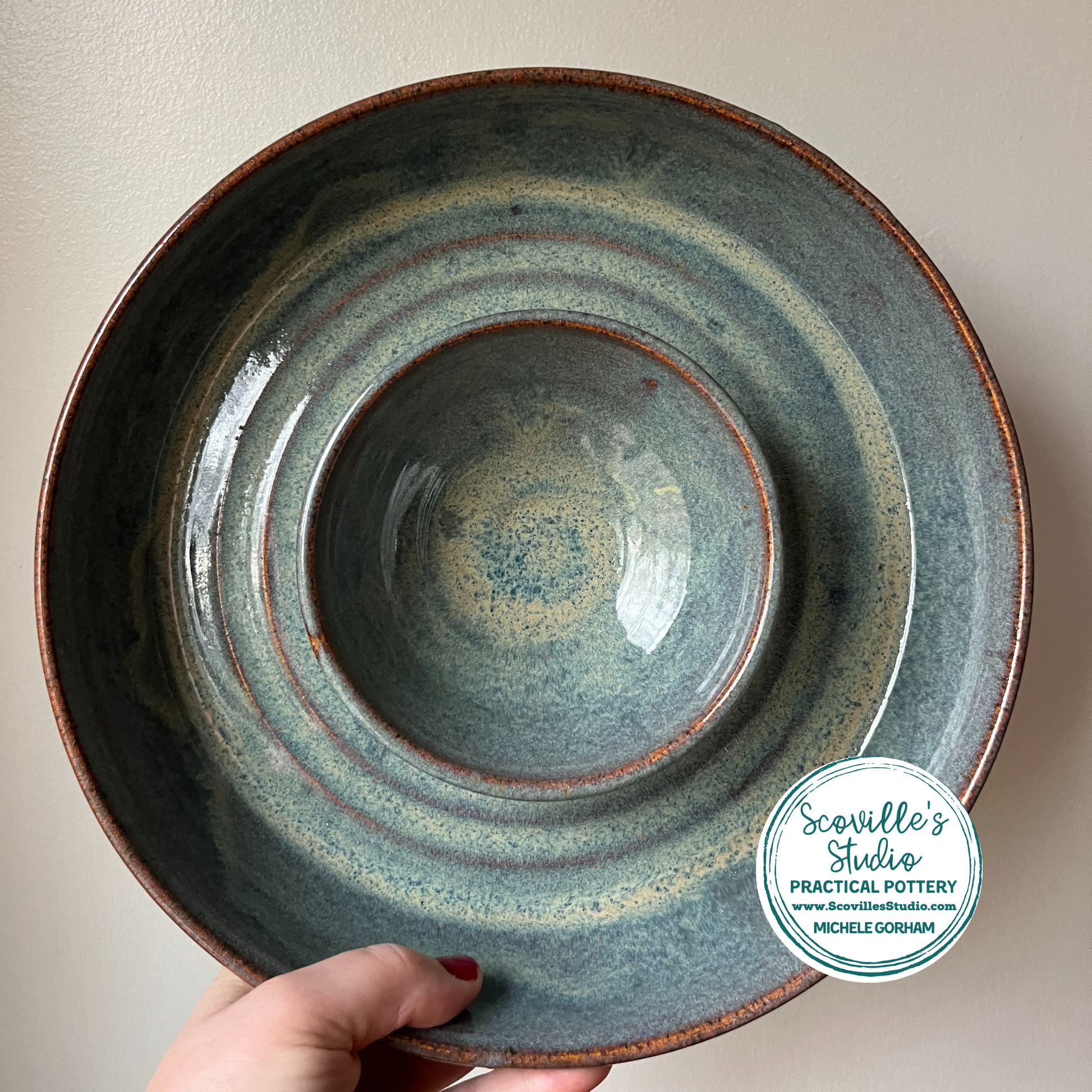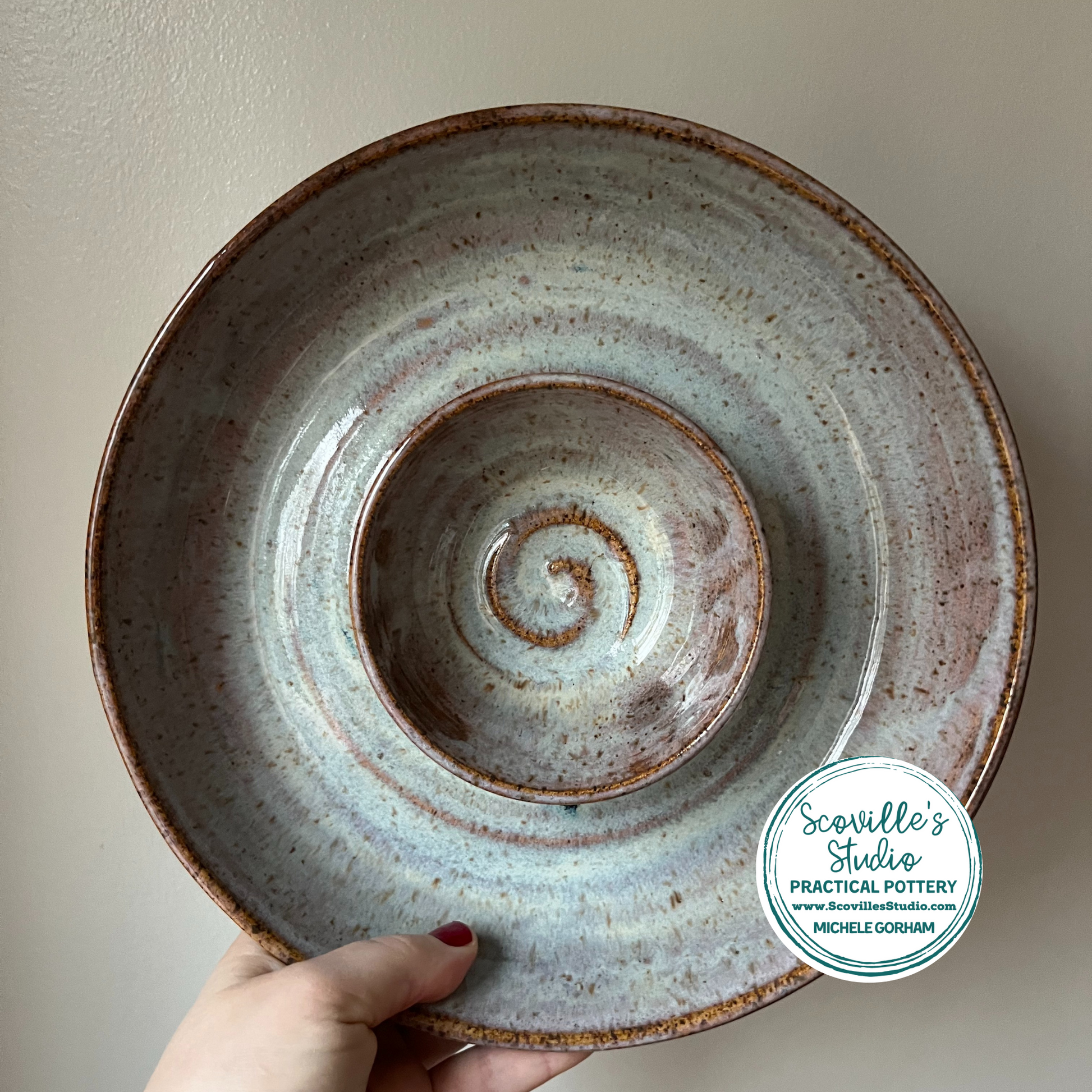 This chip and dip bowl is perfect for entertaining or a snack night! Fill it with your favorite chips and dip, veggies and hummus or favorite snacks!
