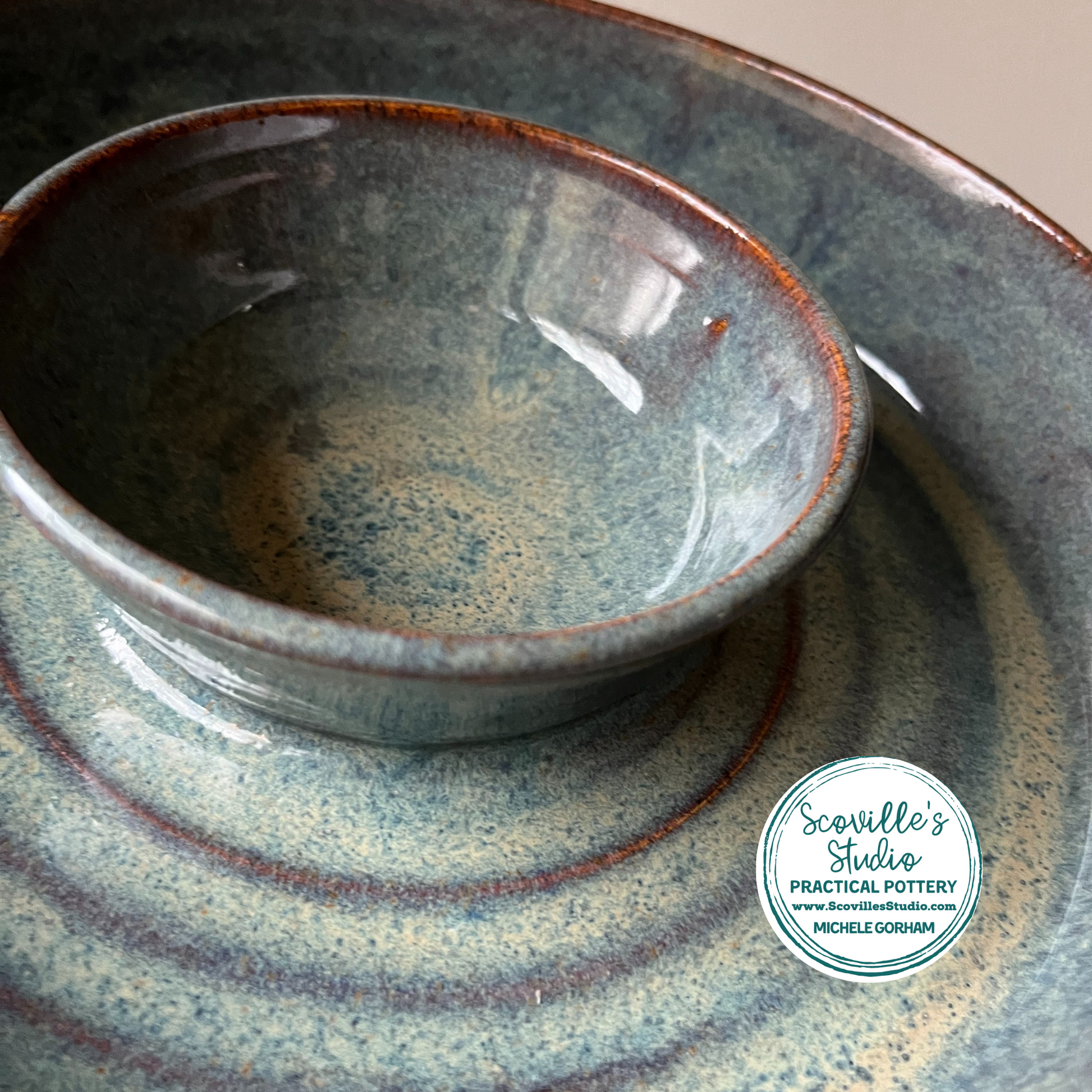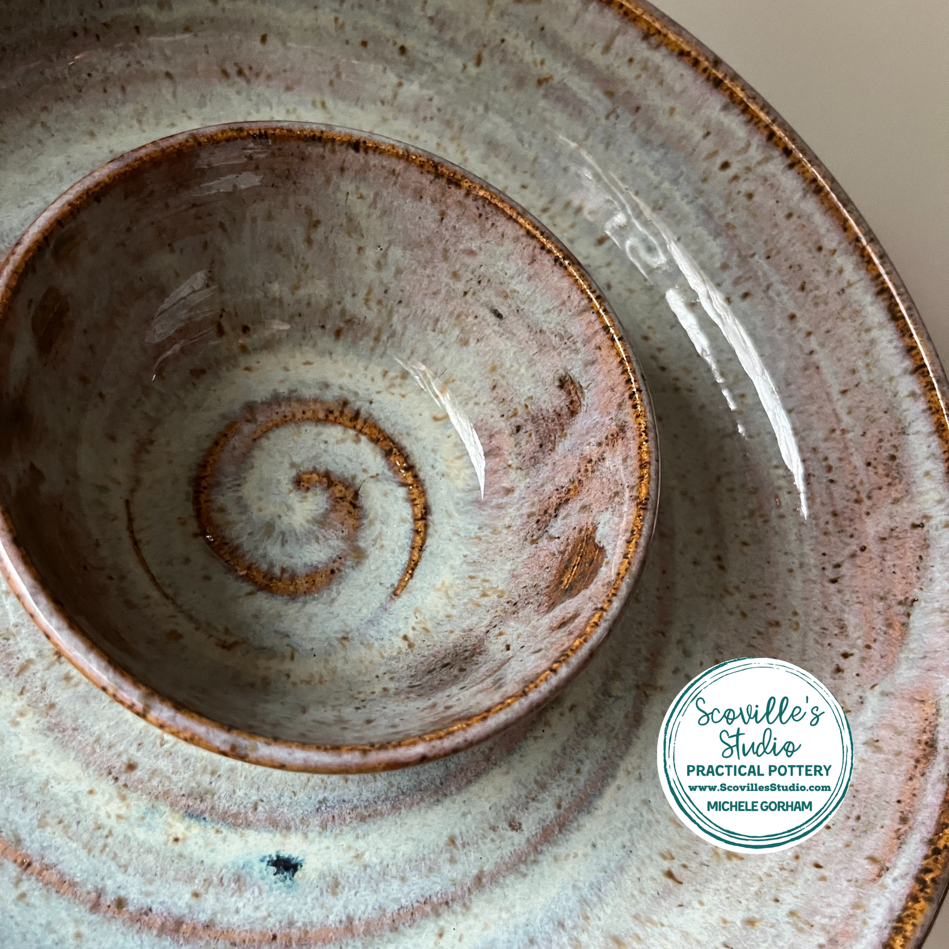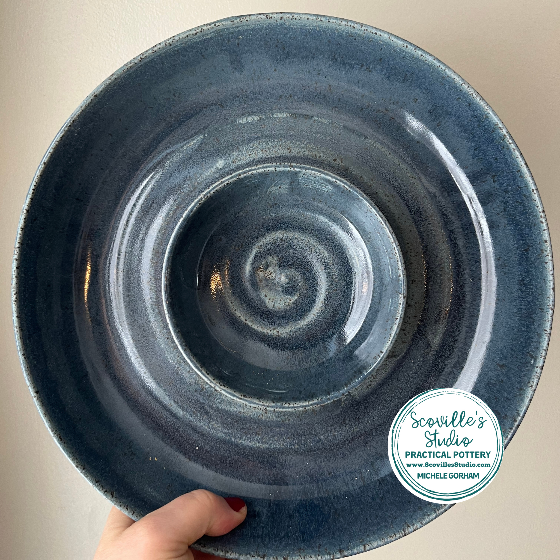 This chip and dip bowl is perfect for entertaining or a snack night! Fill it with your favorite chips and dip, veggies and hummus or favorite snacks!