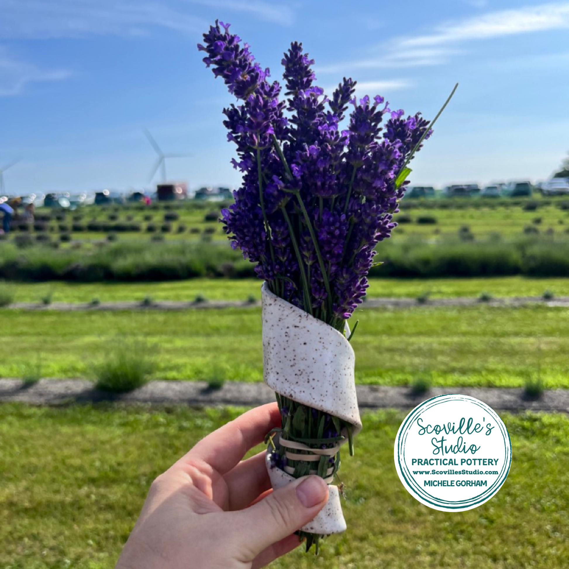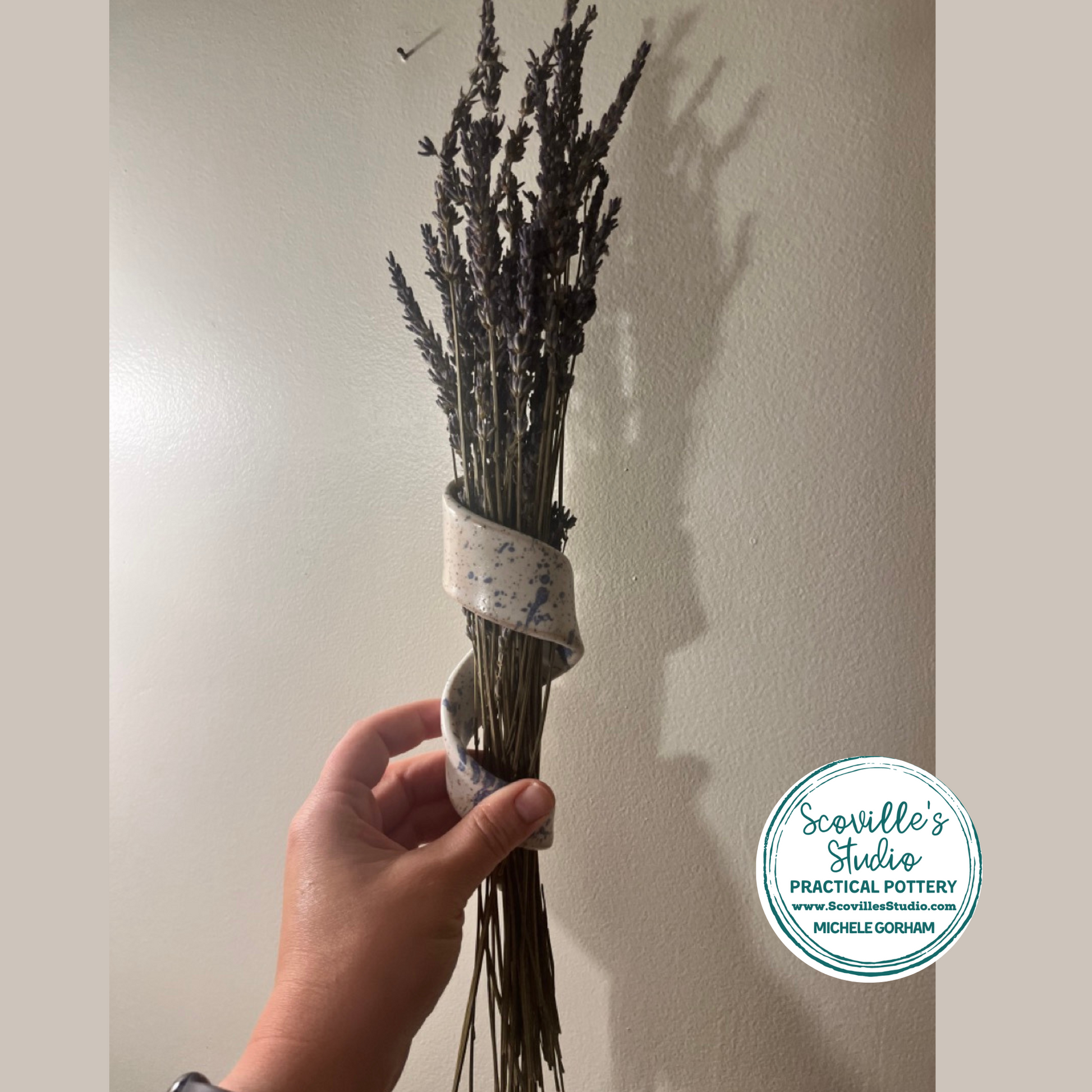 Works with any bunch of dried flowers or herbs(Lavender, eucalyptus) and holds approximately a 1.5-inch bundle of flowers.