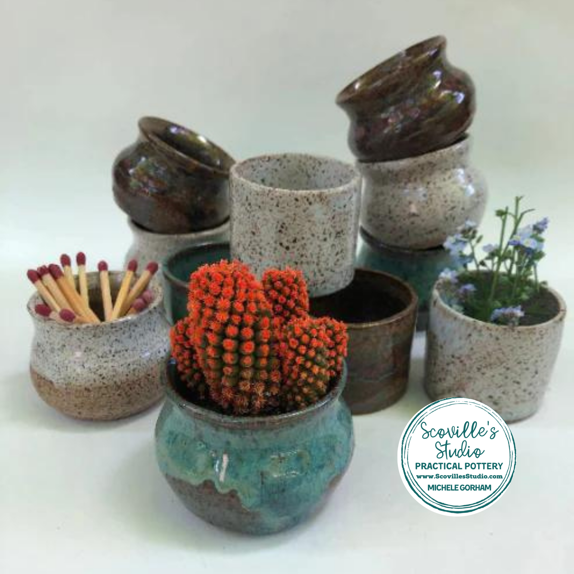 These little pots are perfect for small succulents, plants, matchstick holders, catchalls, even shot glasses !