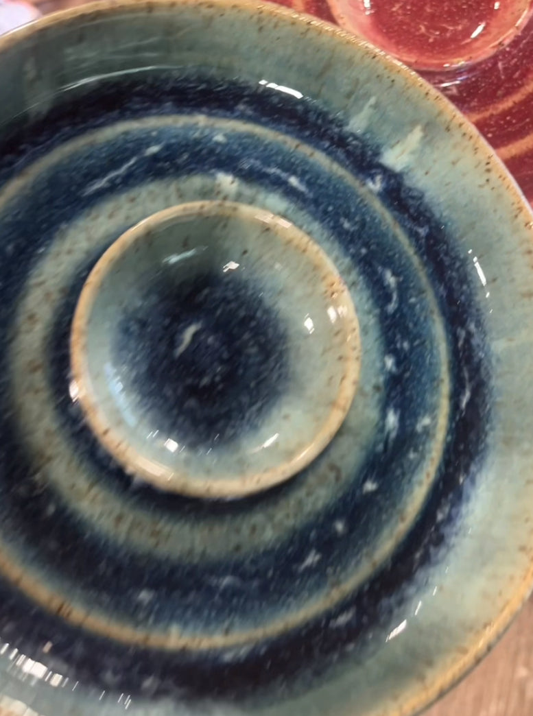 These bowls are about 6-7 inches wide and hold about 1/3 cup of your favorite dip! They come in a variety of glazes too!