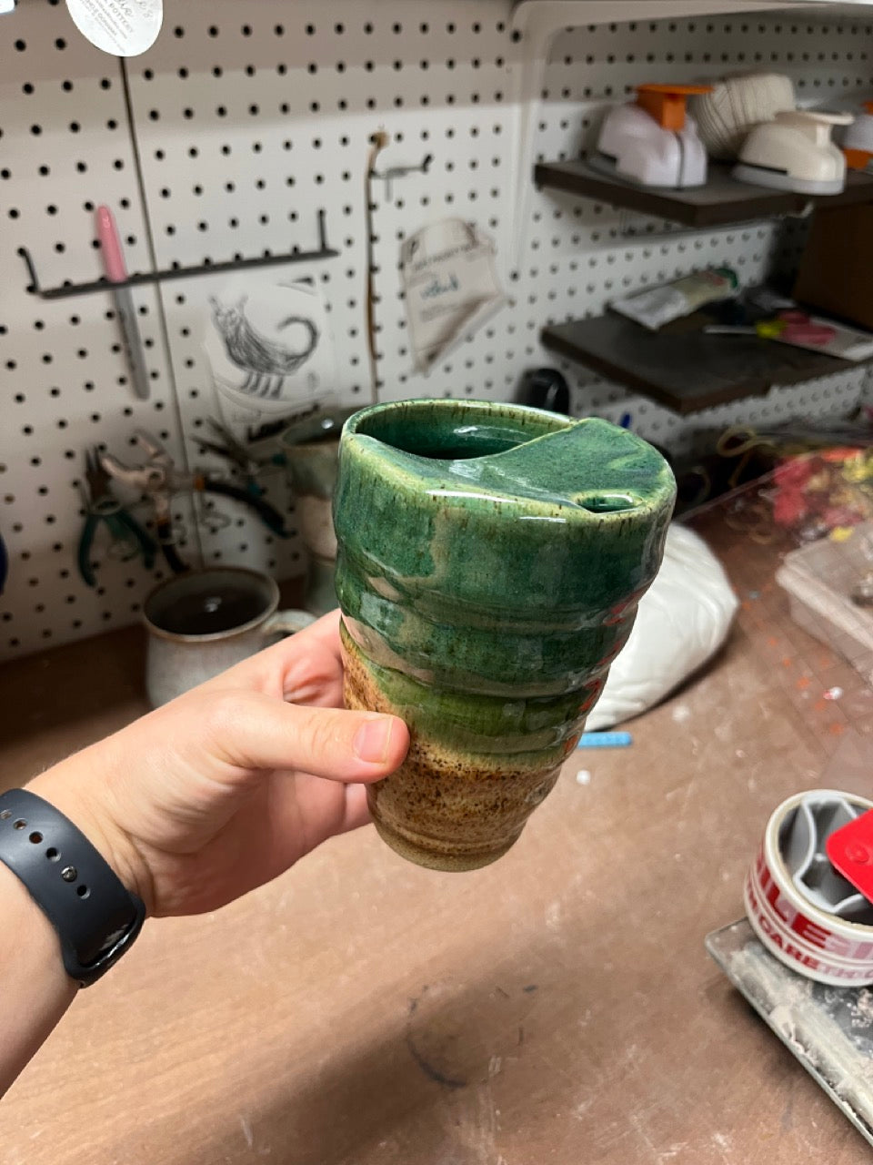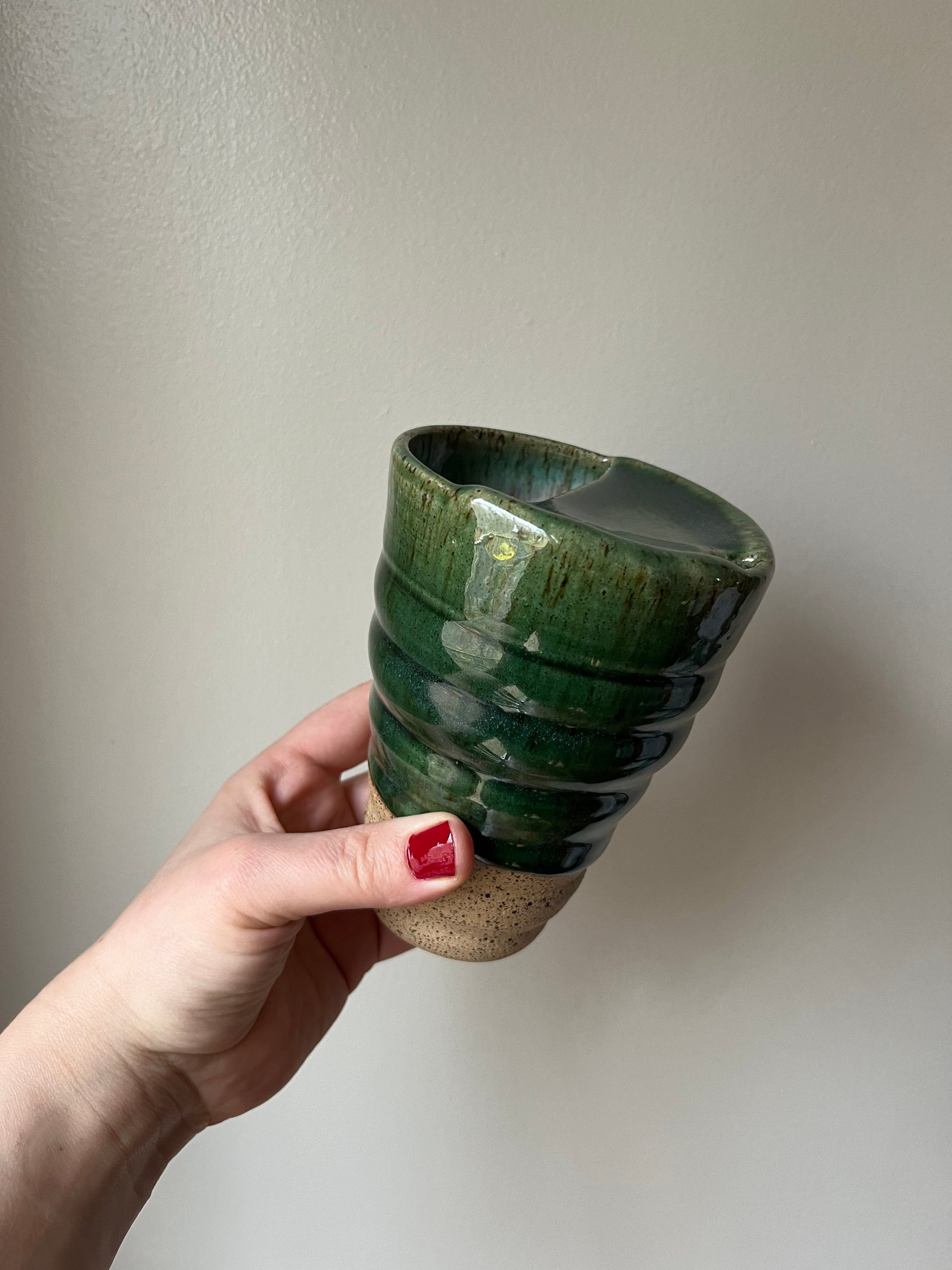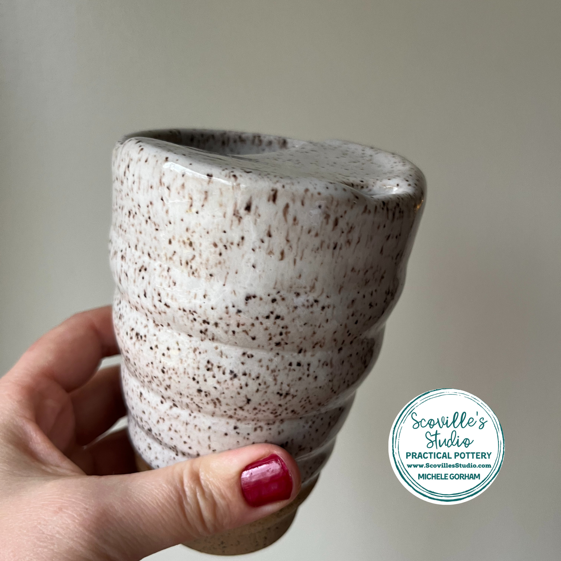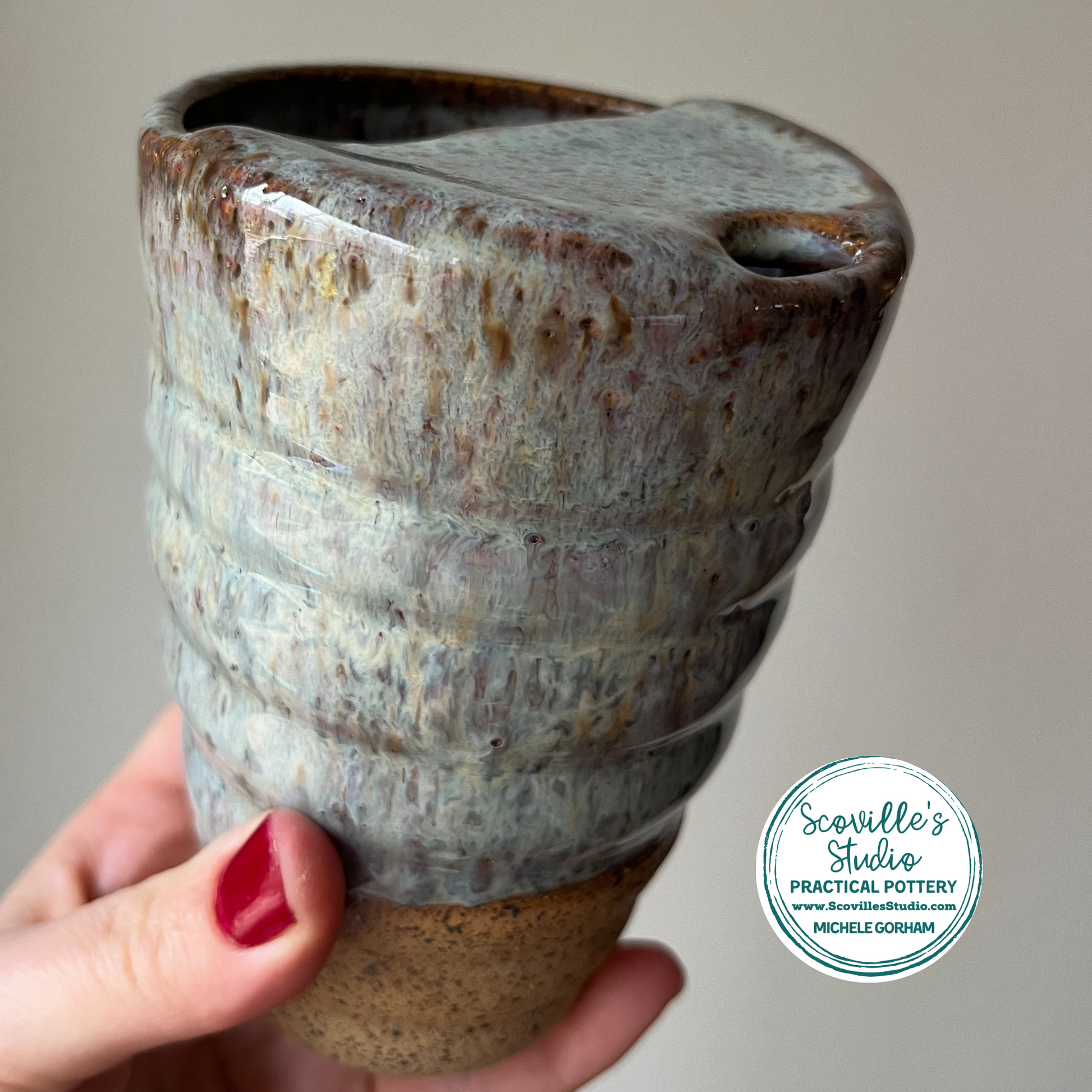 Love your coffee in a ceramic, handmade mug but the handle won't fit in your car's cup holder?