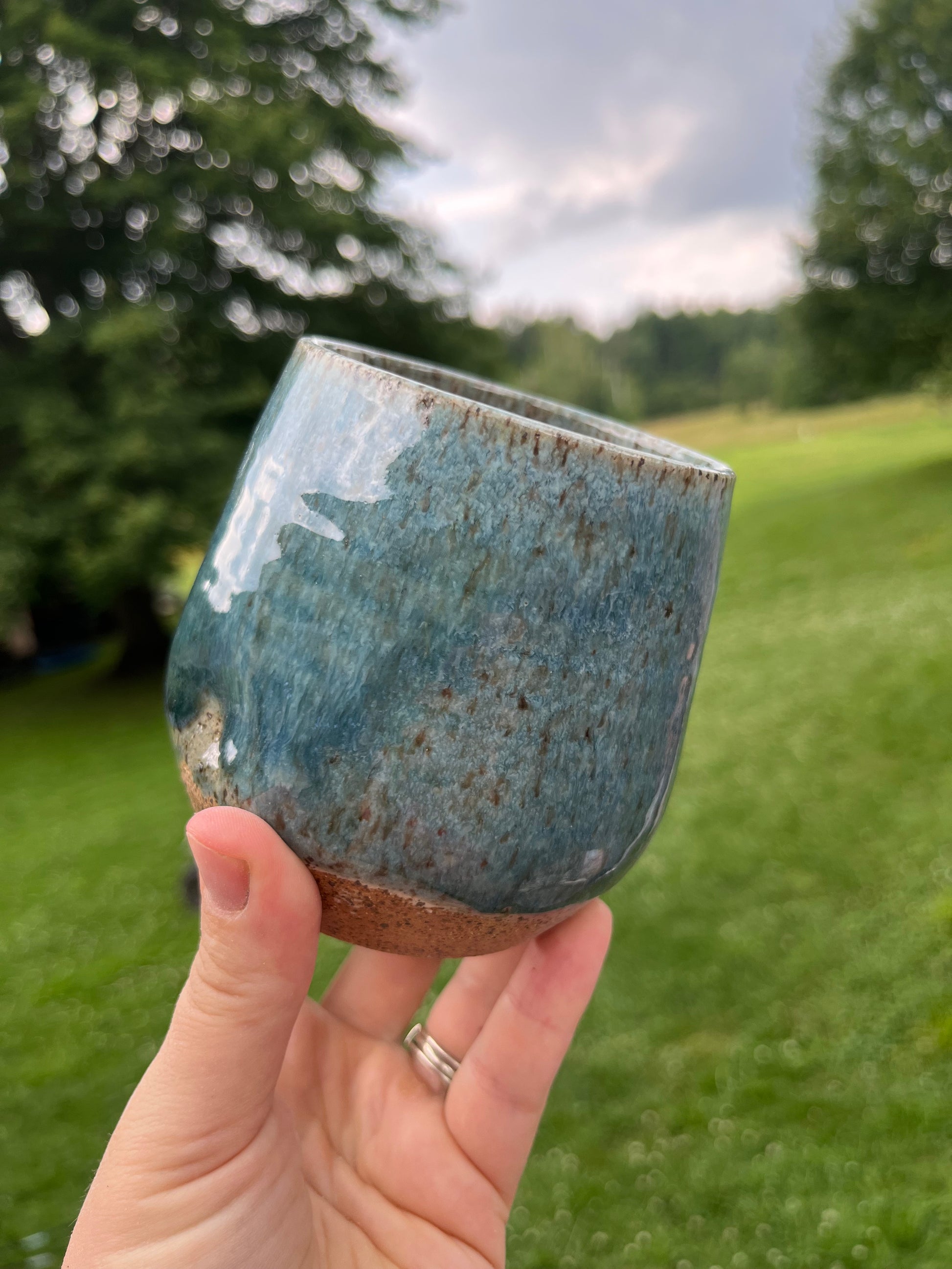 These wine glass shaped tumblers easily hold 12 ounces of your favorite drink! Two thumb dents help you hold it!